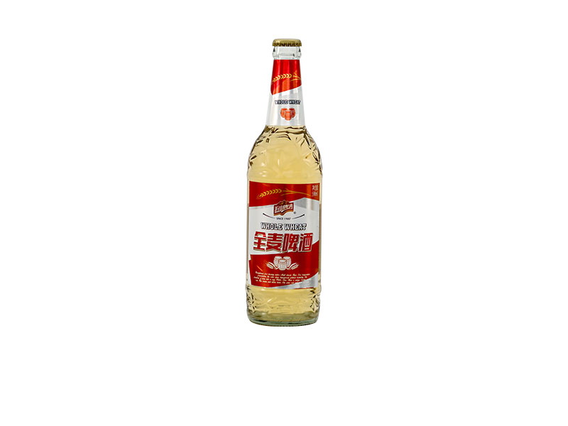 全麦啤酒为满足广大消费者的大瓶过瘾需求,推出的590ml白瓶熟啤酒,以优质大麦芽、泉水、糖浆、新疆优级啤酒花制品为主要原料,经优质酵母发酵而成,色泽淡黄,泡沫细腻洁白,酒花香与麦芽香淡雅。以其淡爽的口感,优美的外观设计,深受消费者喜爱。